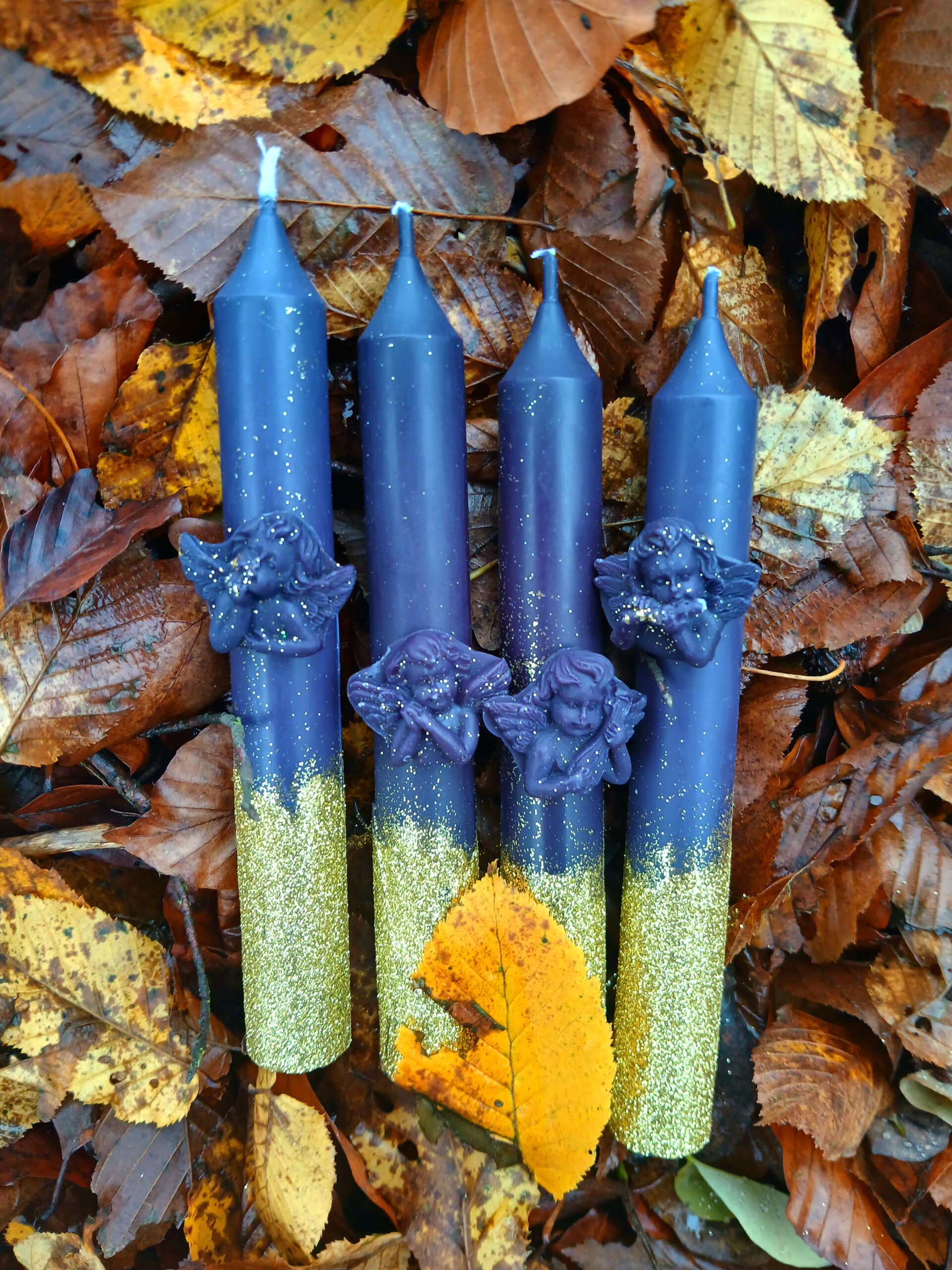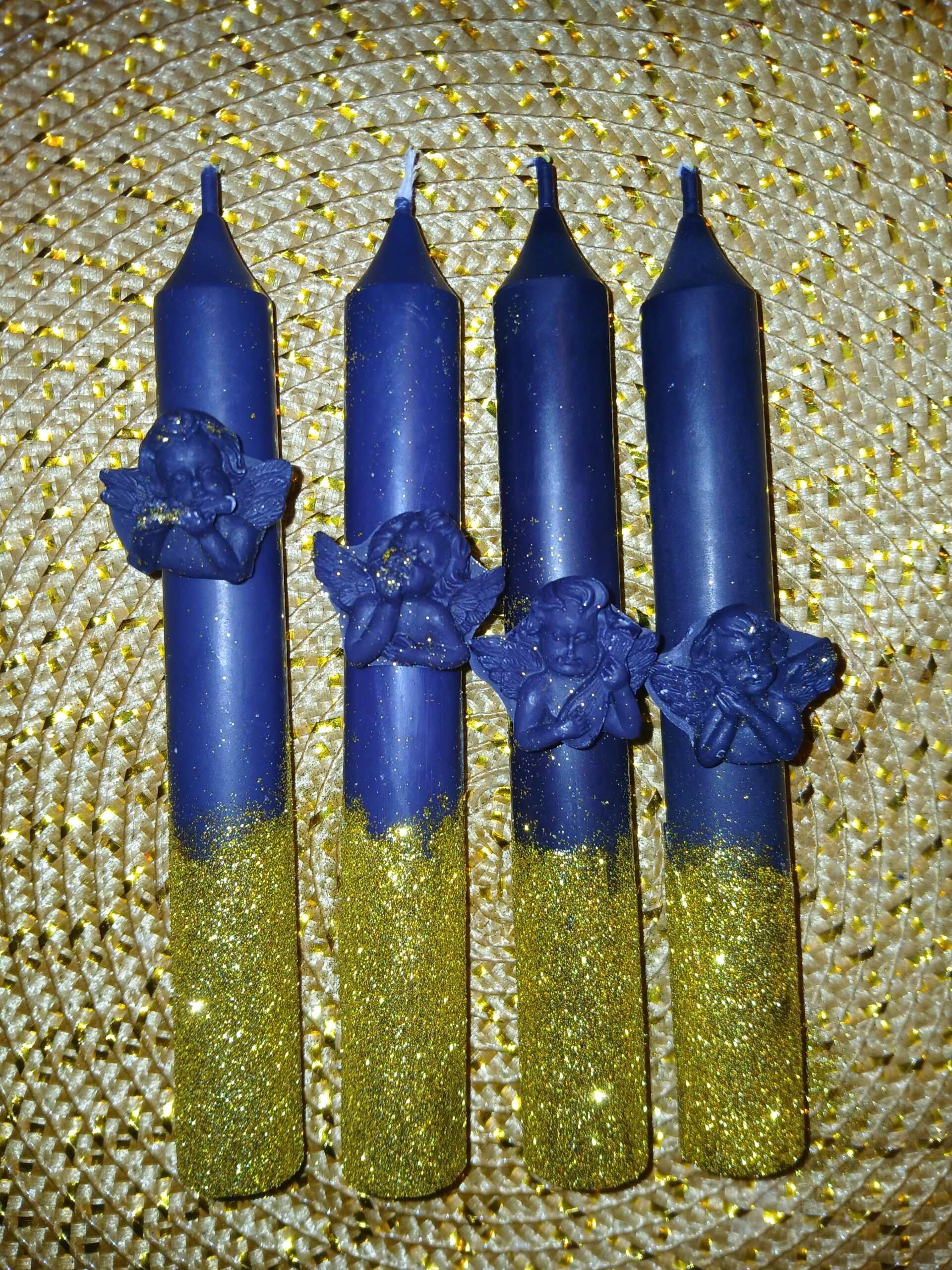 Adventní svíčky sada 4 kusu černá se třpytivou zlatou z přírodního sójového vosku. Mám na výběr i sady adventních svíček v kombinacích čistě bíla s anděly, čiste bíle svíčky, kombinace bíla se stříbrnými třpytkami, zlatými třpytkami. Barevné kombinace dle vášho výbeřu – je možné si napsat email (kontakt dolu na web stránce) a zvolit si barevnou kombinaci dle vlastního výběru (mám všechny barvy Vánoc – bílá, zelená – ruzne odtíne, skořicová (barva roku 2025 dle trendu), bledě modrá i tmavě modrá, červená, ružová již máte výzdobu lazedou do ružové, fialová – ruzne odtíne, barvy svíček mužete i kombinovat stačí napsat a objenat si.