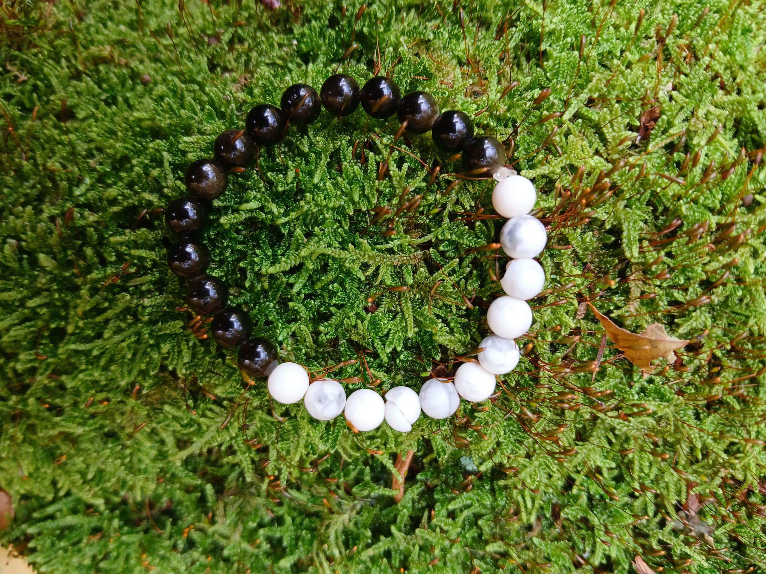 Náramek jing-jang s howlitem a černým turmalínem. Vyrábím na míru do 3-5 dní.