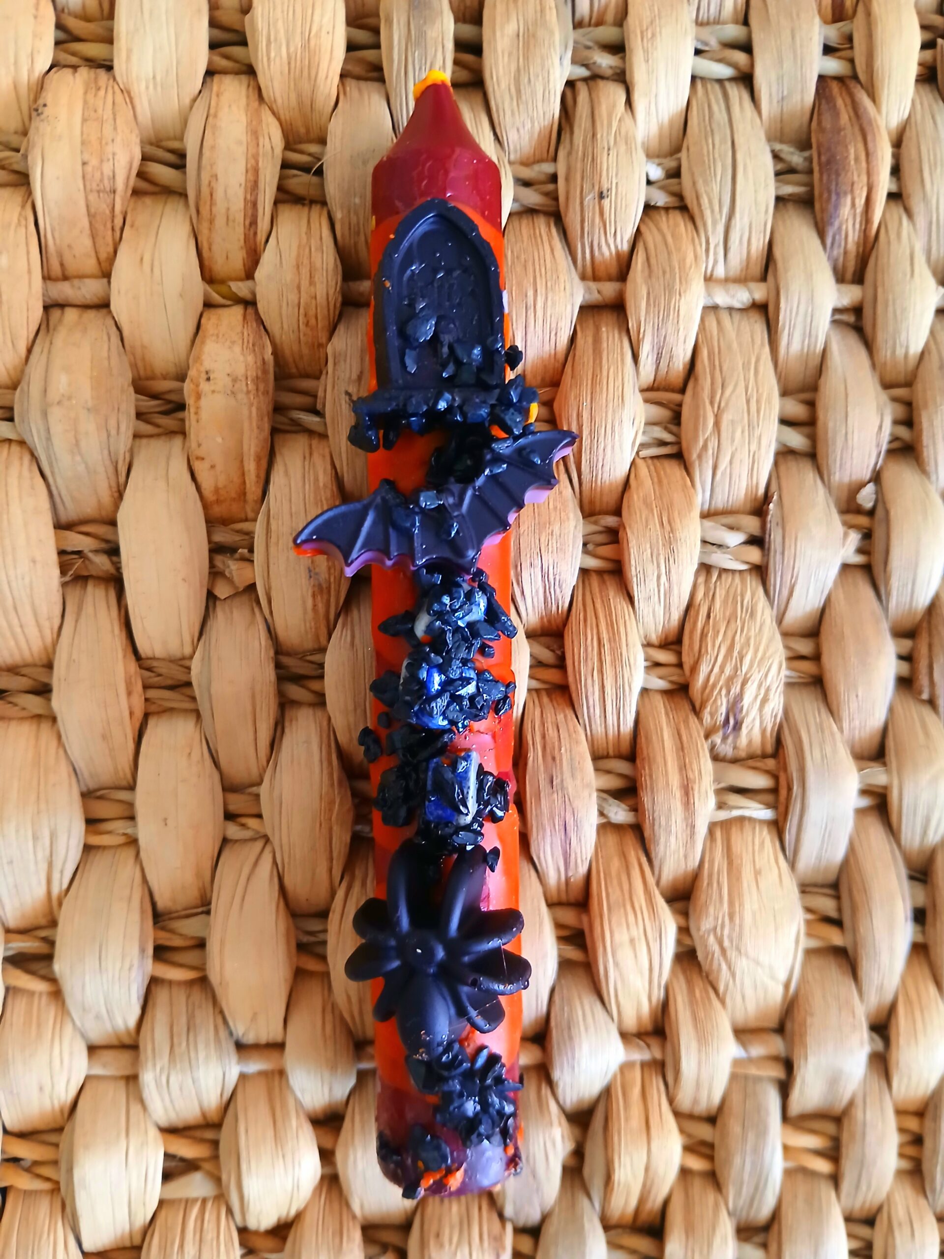 svíčka halloween s netopýrem a minerálem černý turmalín